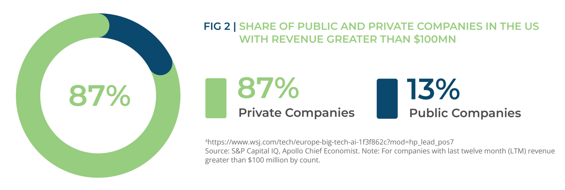 [4] https://www.wsj.com/tech/europe-big-tech-ai-1f3f862c?mod=hp_lead_pos7; Source: S&P Capital IQ, Apollo Chief Economist. Note: For companies with last twelve month (LTM) revenue greater than $100 million by count.