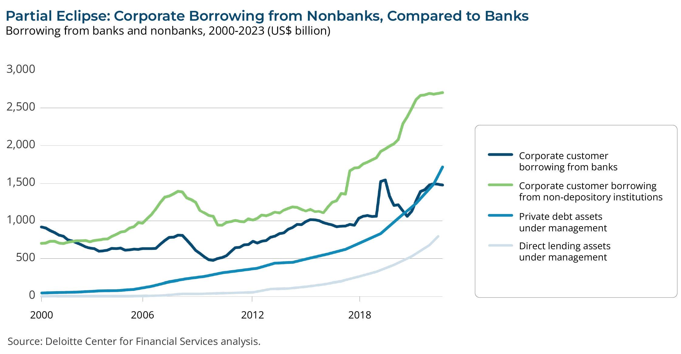 Traditionally banks have been the primary source of funding for corporate loans. While banks tightened the lending standards of loan portfolios, small and medium-sized businesses still needed funding for their operations. While the demand from Corporate America for debt financing remains robust and banks as a source of capital has declined, private market lenders have stepped in to fill the void as a source of capital.