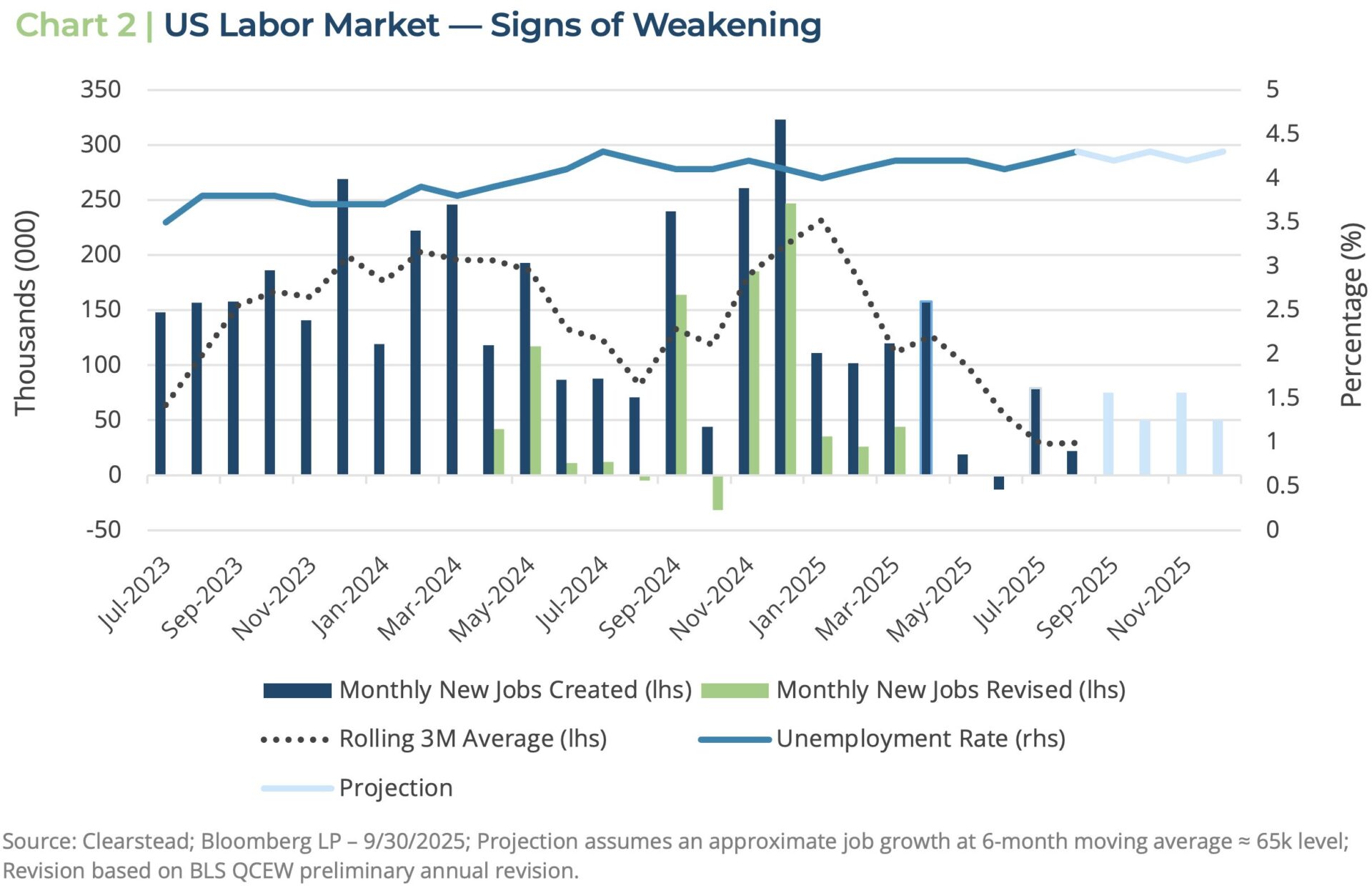 - The status of most US corporates and consumers remains healthy despite the labor market looking more fragile during the quarter.